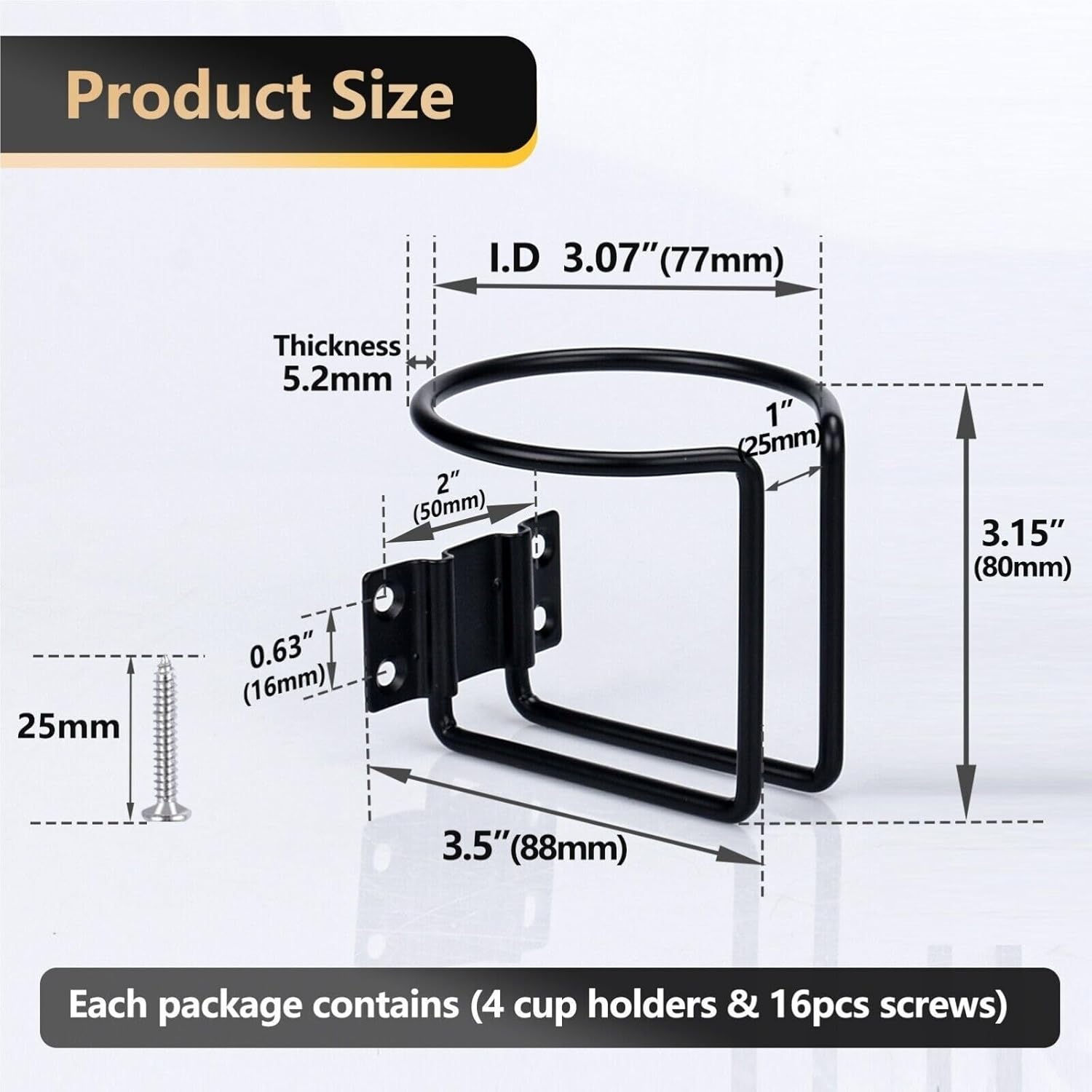 2Pcs Stainless Steel Marine Ring Cup Drink Holder, Boat Accessories, Yacht, Truck, RV, Camper(2pc Balck)