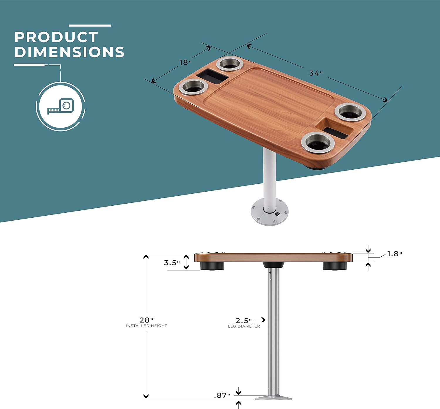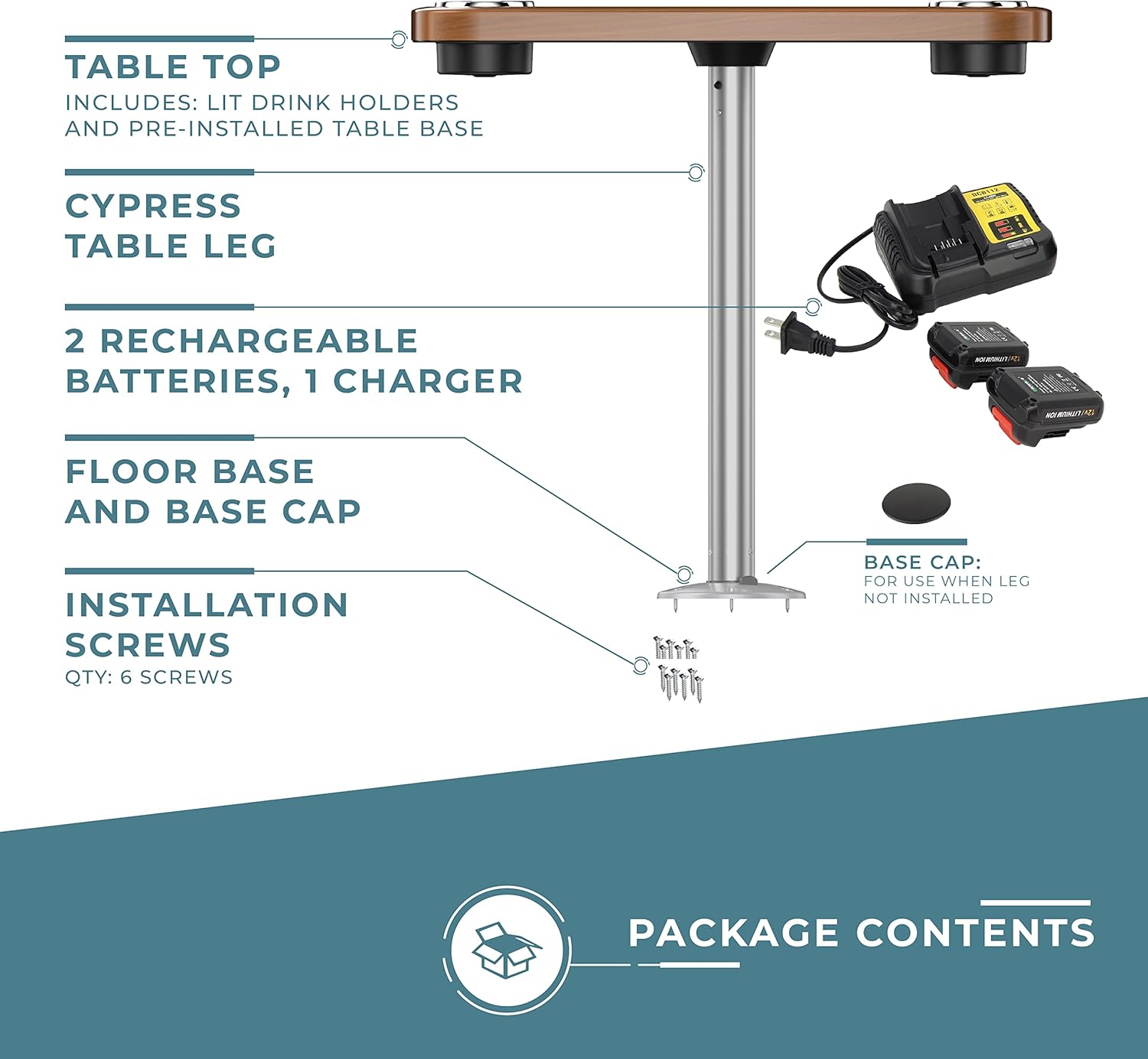 Manufacturers’ Select ITC Lit Marine Boat Table Leg Set. Pontoon Accessories, Marine Pedestal Table. Large Top with Blue Led Lit Drink Holder