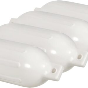 FEATURES:This essential boat accessory prevents damages to your boat when at dock or against other vesselsThe fenders is molded out of commercial strength marine vinyl for extra durabilityUV-resistant making it perfect for long term useThere are reinforced rope holes on both ends and a ribbed design all around for a resilient protection to your sailThe fenders can be used vertically or horizontally making it a multi-purpose part of your vesselDimensions: 27″(L) x 8.5″(dia)Specifications:Dimensions: 27″(L) x 8.5″(dia)Product weight: 4 lbs (each not inflated)Material: VinylNon-abrasive, UV-resistantColor: White4 boat fenders included