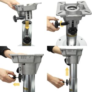 ONHI Adjustable Aluminum Boat Seat Pedestal 13-19 Inch Height, Locking Design, Silver Polished, for Fishing Boats and Marine Vessels
