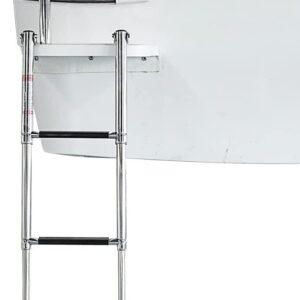 This ladder features anti-slip rubber treads on each step, footing in wet conditions and preventing any accidental slips. Its telescoping design allows the ladder to fold quickly and effortlessly into the water for easy boarding, and it can be compactly stored to maintain a sleek and unobstructed deck when not in use.